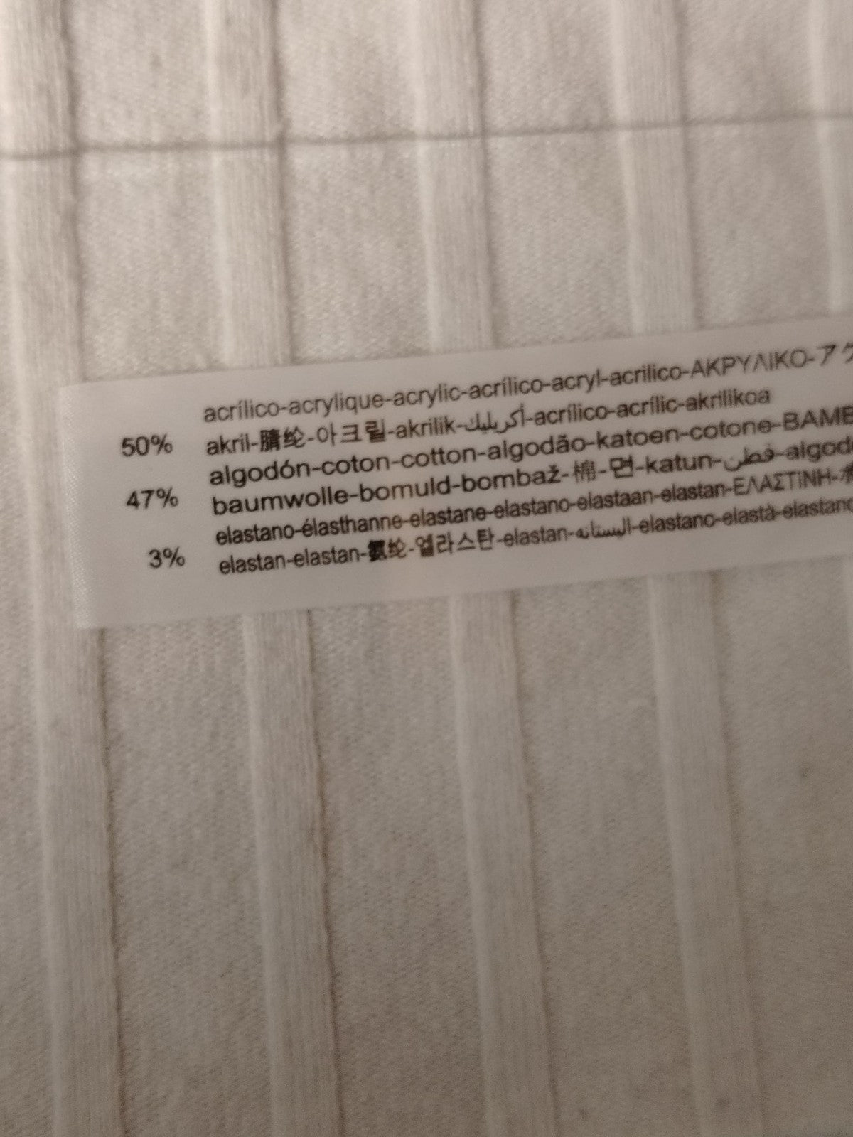 Material: 50% Acrylic 47% Cotton 3% Elastane