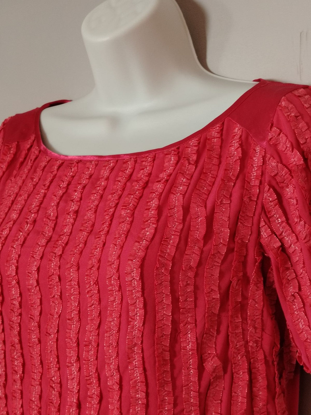 Reiss Dress Womens 6 Pink Textured Ruffle Scoop Neck Short Sleeve Sheath