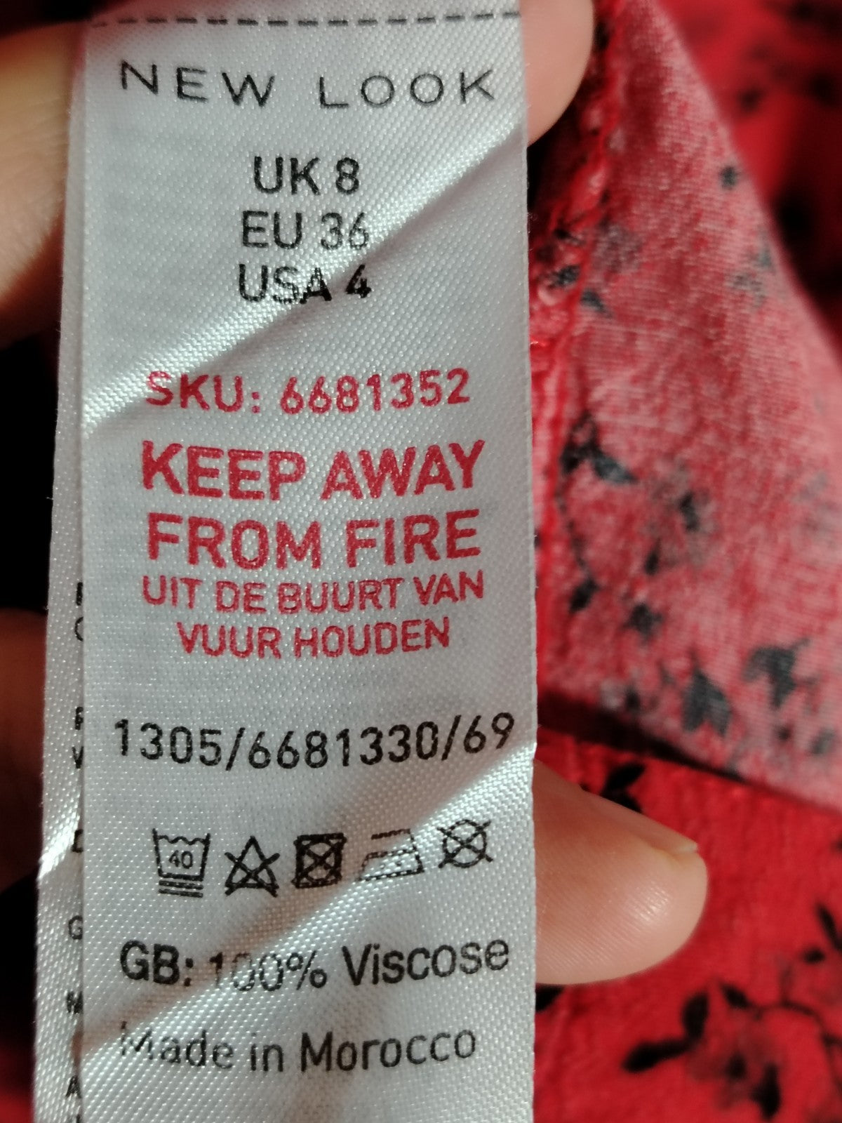 Colour/Pattern: Red with a black floral/sprig print.