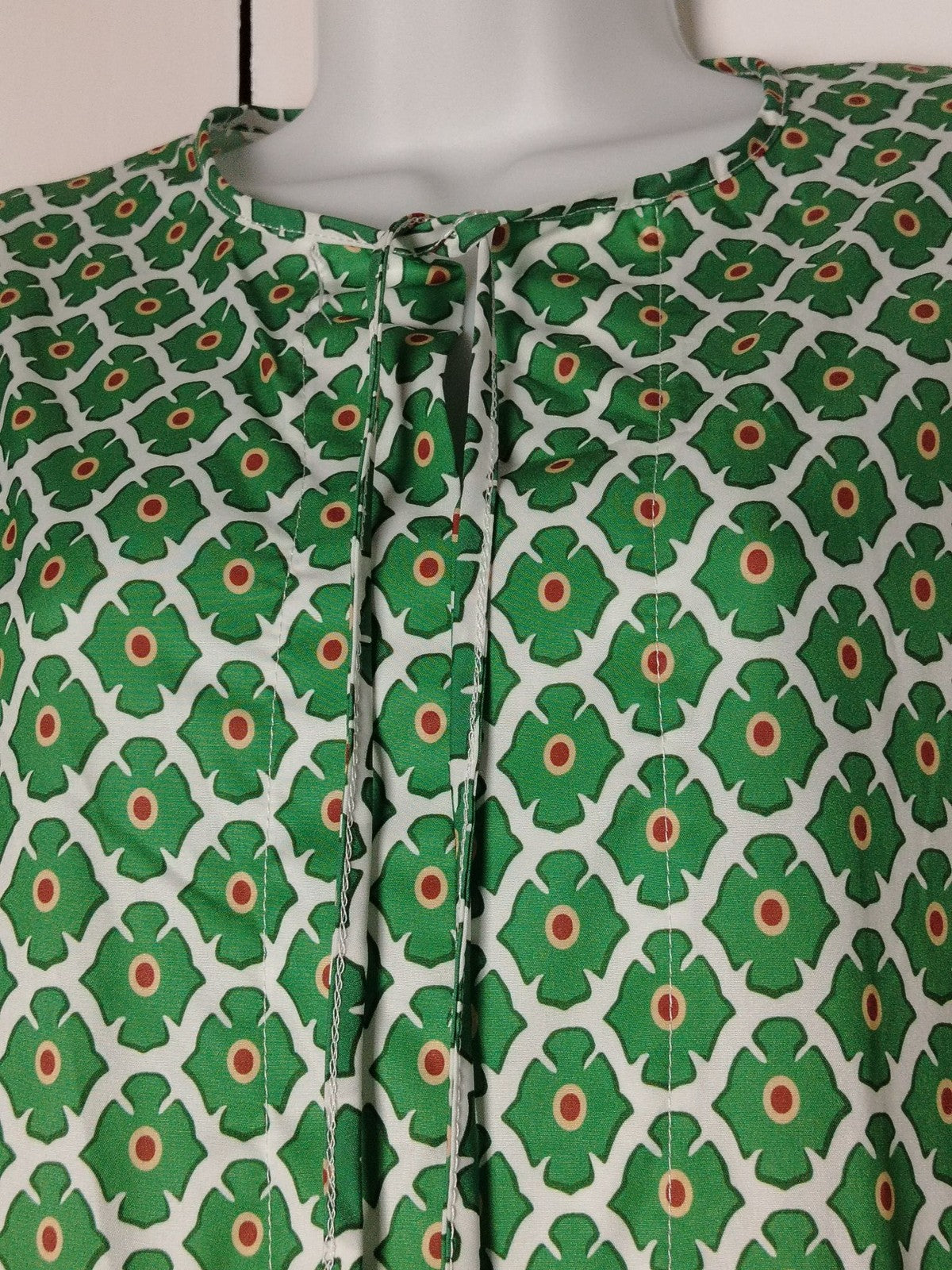 Womens Dress G3 Green Geometric Floral Tiered Maxi V Neck Tie 3/4 Sleeve