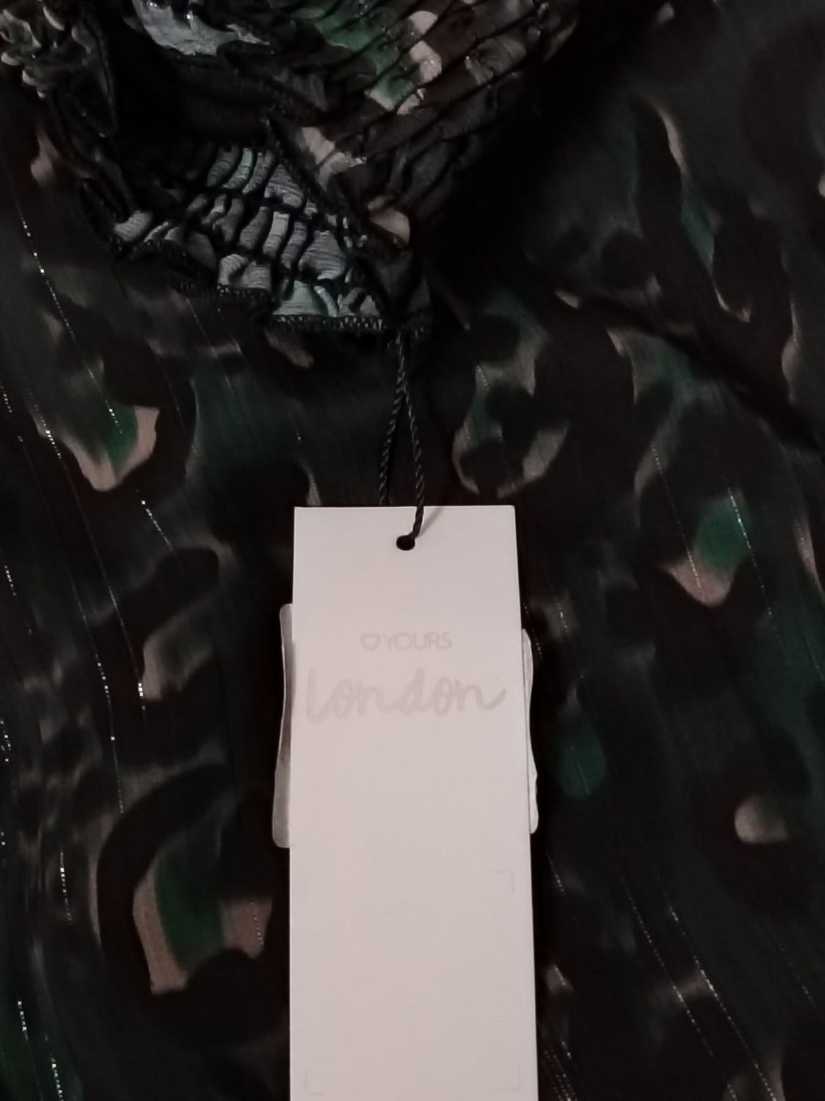 Yours London Blouse Womens UK 30-32 Green Sheer Cold Shoulder Smocked Sleeve
